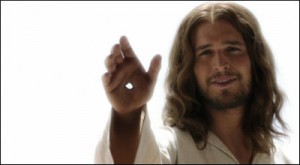 In this image from 'The Bible,' Jesus appears to John the apostle on the island of Patmos. (Joe Alblas / The History Channel)