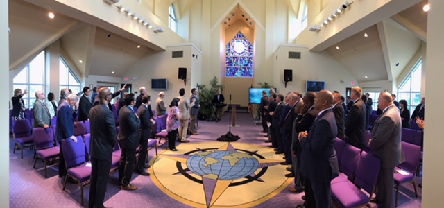 Members of the IEC and AMC join together in the International Prayer Center, located at the North Cleveland Church of God (click photo to enlarge)