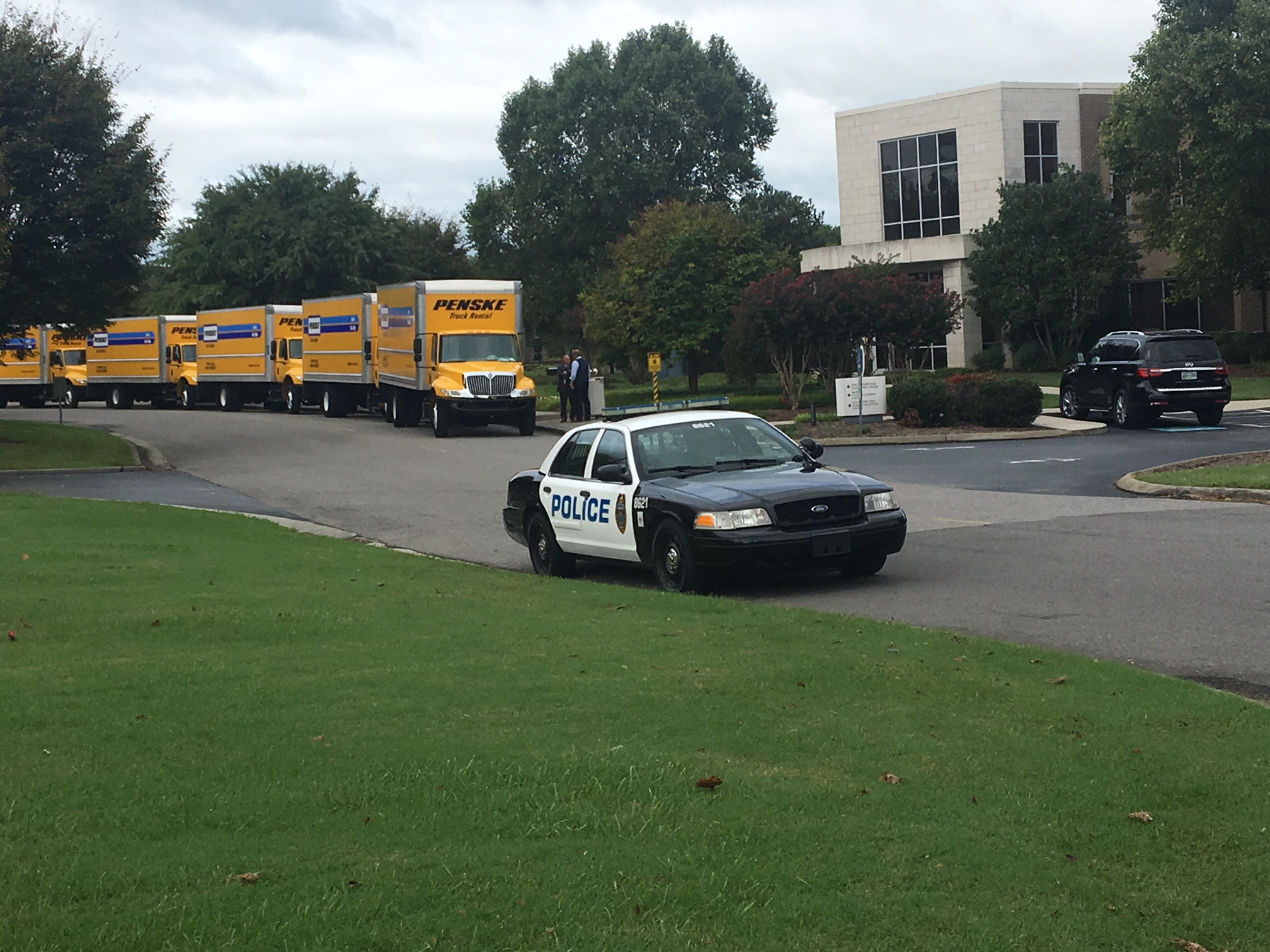 On Monday morning, September 17, a police-escorted convoy of nine Penske trucks left the International Offices campus in a relief effort jointly sponsored by the Youth and Discipleship Department, God’s Pit Crew, Operation Compassion and Penske. Youth and Discipleship Director David Blair and Assistant Director Rob Bailey were two of the nine drivers as the convoy headed out to Eastern North Carolina.