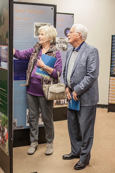 During the brief program at the exhibit opening, Dr. Louis Morgan reported the sacrifices of the first Bible Training School teacher, Nora Chambers, and other early teachers, staff, and supporters. When financial challenges threatened Bible Training School in 1923, Chambers wrote, “We went to prayer and got our heads together to help answer our own prayers. Sister Lee gave her canned goods and bought no clothes that year. Sister Garner, the matron, did the cooking for no pay.”