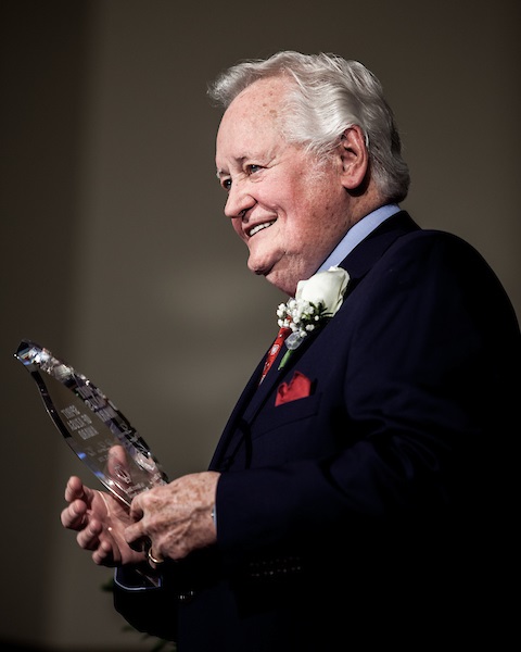 Dr. Lamar Vest holds the Spirit of Azusa Award, presented to him on October 23, 2018 (Photo: Tammy Rockwell)