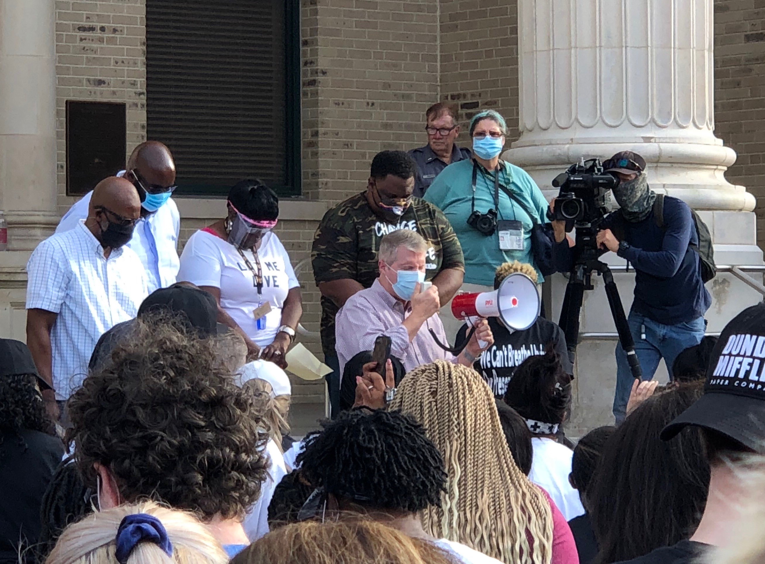 “When I found out that a large protest was being organized in the city, I immediately contacted Demetris, a fellow Church of God pastor, who also serves as our city’s Director of Public Works,” Schrade stated. “Together we teamed up to help steward the direction into a prayer and protest event with the organizers.”