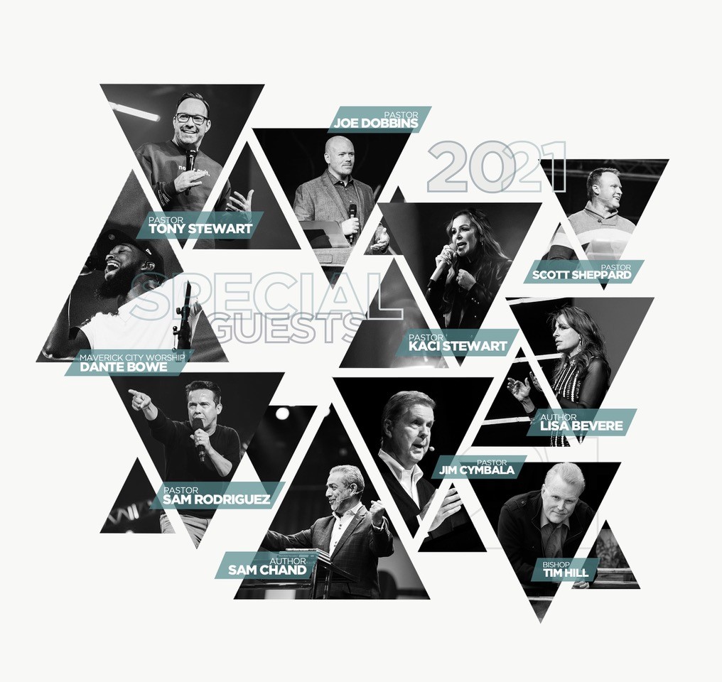 Keynote speakers include Host Pastor Tony and Kaci Stewart, Pastor Joe Dobbins, Pastor Scott Shepard, Rev. Sammy Rodriguez, Author Lisa Bevere, Dr. Jim Cymbala, Dr. Sam Chand, and Dr. Tim Hill, general overseer of the Church of God.